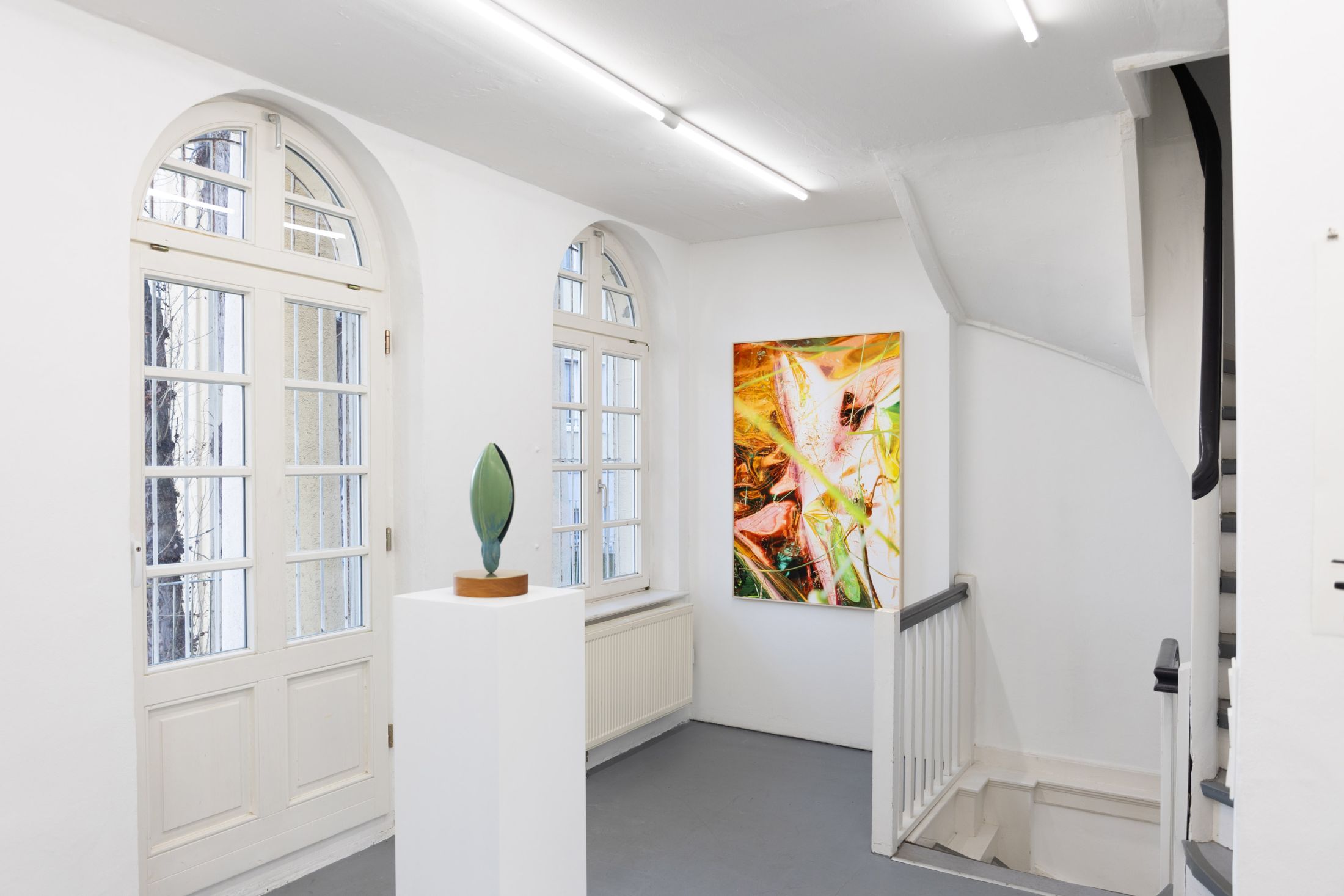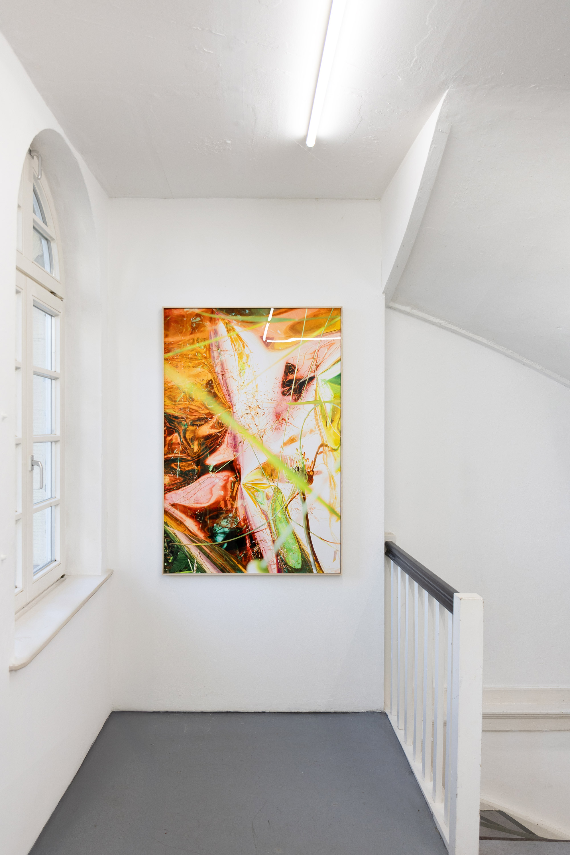 Andrea Grützner’s analogue photographs, on the other hand, initially appear as colourfully coherent, aesthetically pleasing pictorial compositions. The titles of the two groups of works, das Eck, untitled and Erbgericht, reveal little of the details of what is depicted, though they do hint at their places of origin. This is on the one hand the so-called “German corner” in Koblenz and on the other hand an inn in the village where her grandparents live. Grützner’s concentrated focus on formal qualities such as colour and plasticity uncover tasteful idiosyncrasies and preferences and clarify their role as markers of their time.