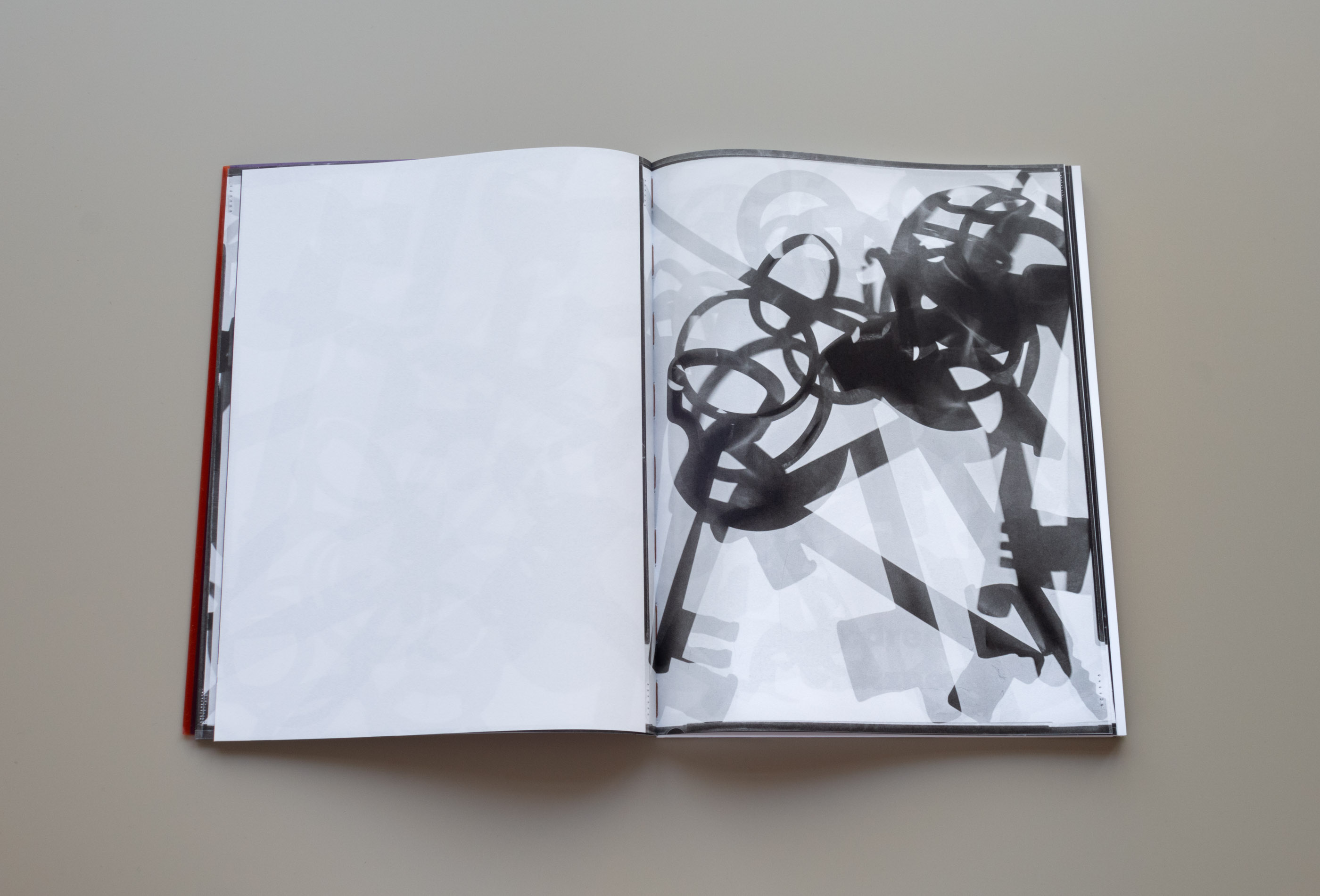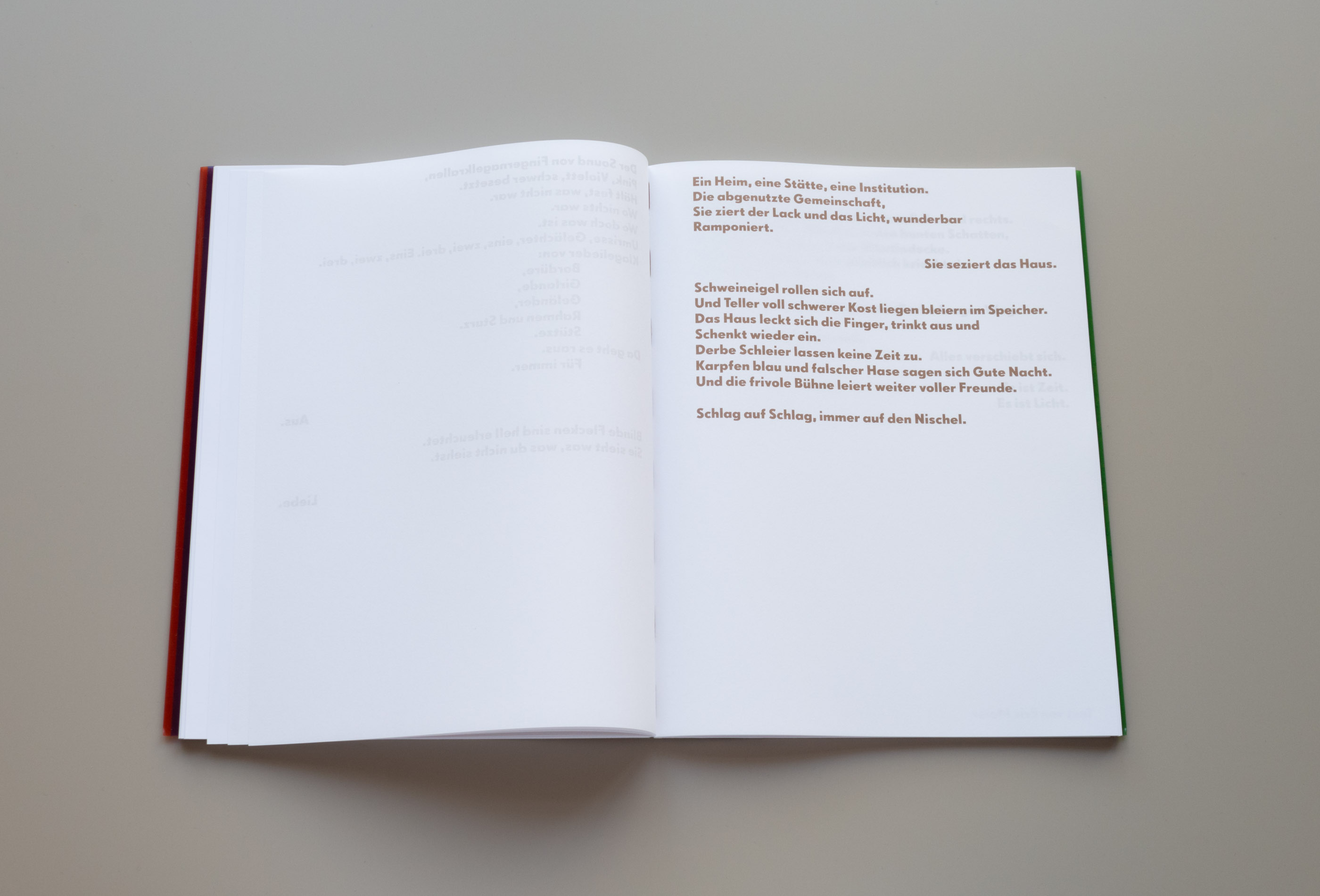 Hochformate im Buch als doppelseitige Querformate arrangiert, was das
